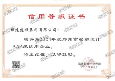 2024年度鄭州市建筑施工總承包AAA級信用企業