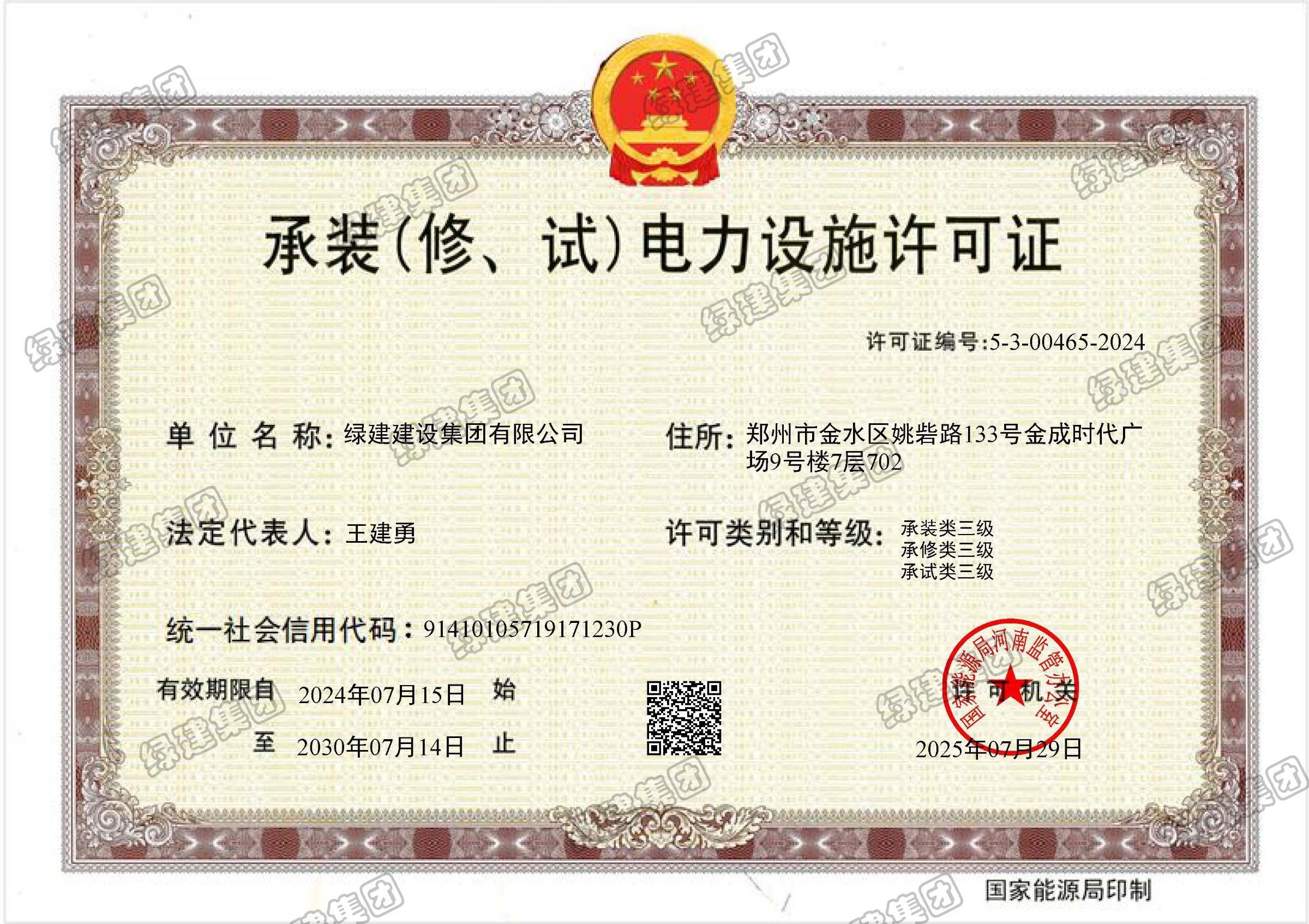 承裝(修、試)電力設(shè)施許可證三級(jí)